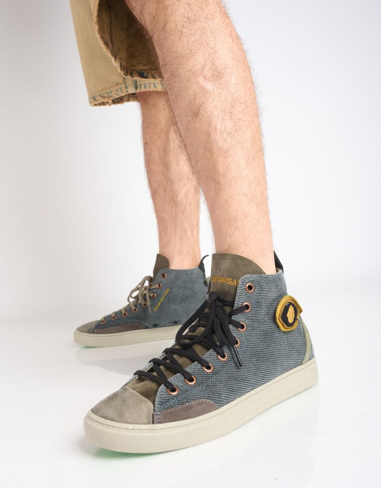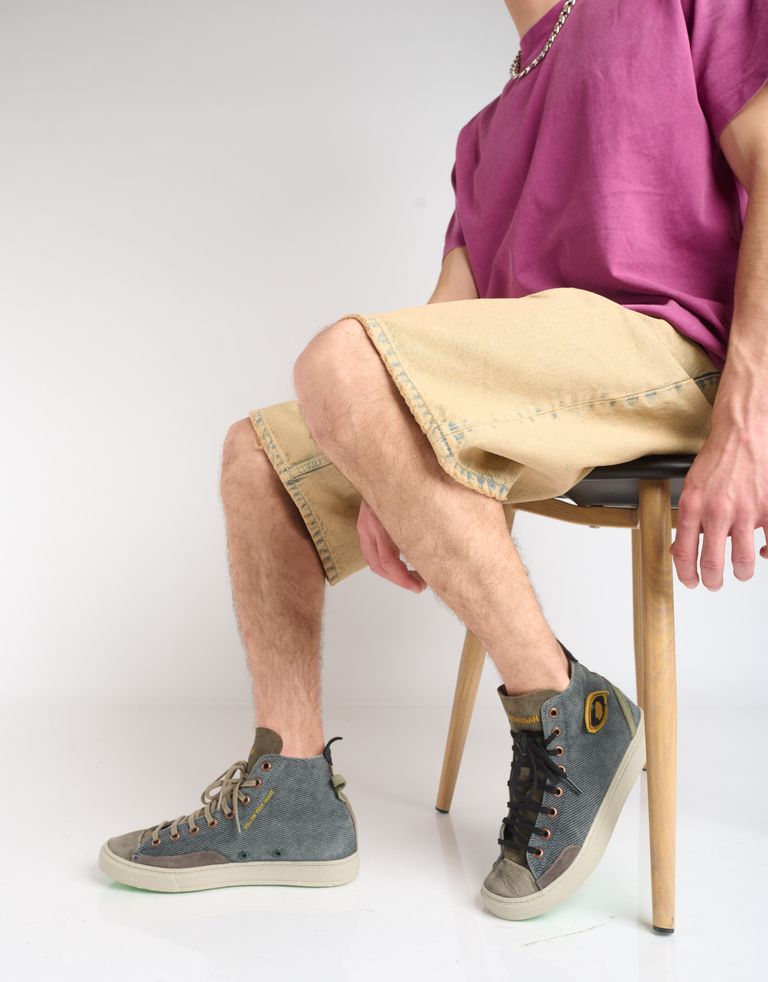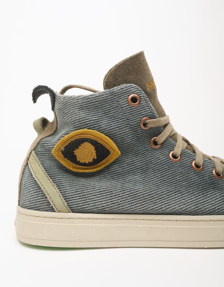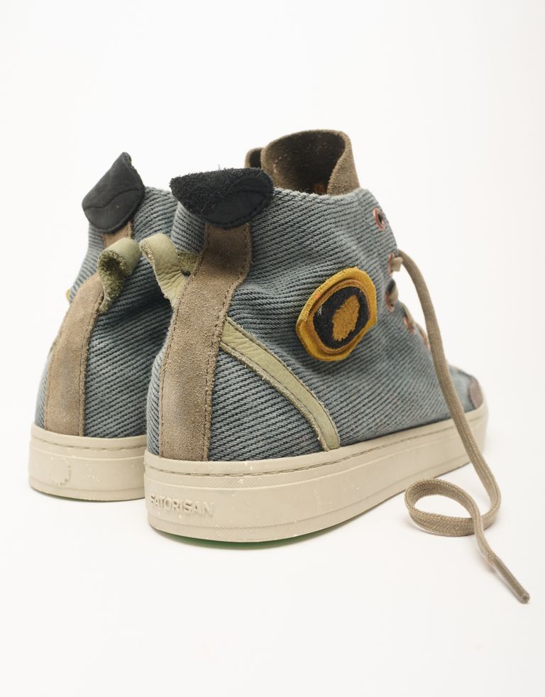 נעלי סניקרס היי-טופ במראה וינטג'י אבל הכי מעודכן שיש. הנעליים עשויות עור רך, זמש וכותנה אורגנית ועמידה למים, מחומרים ממוחזרים שעושים טוב לכדור הארץ ולנועל אותם.