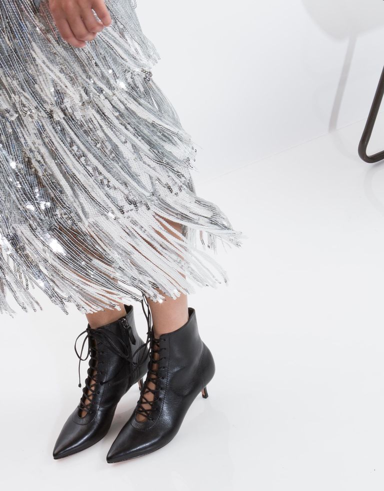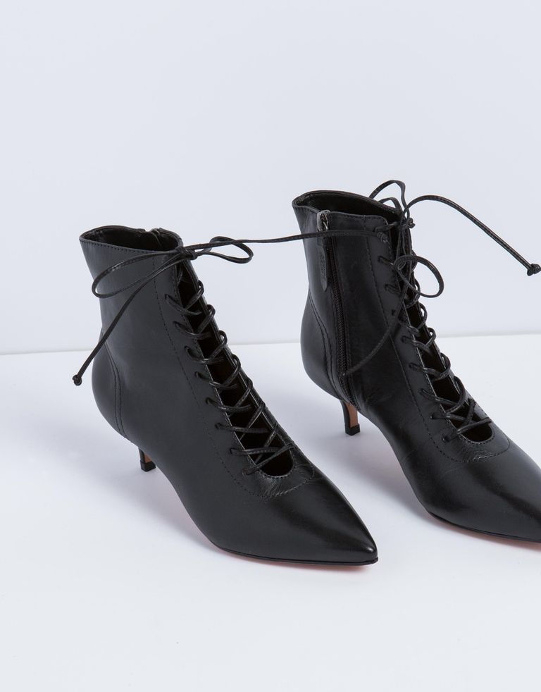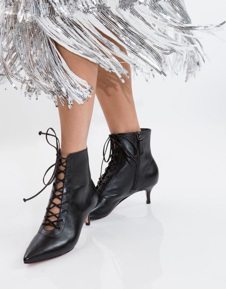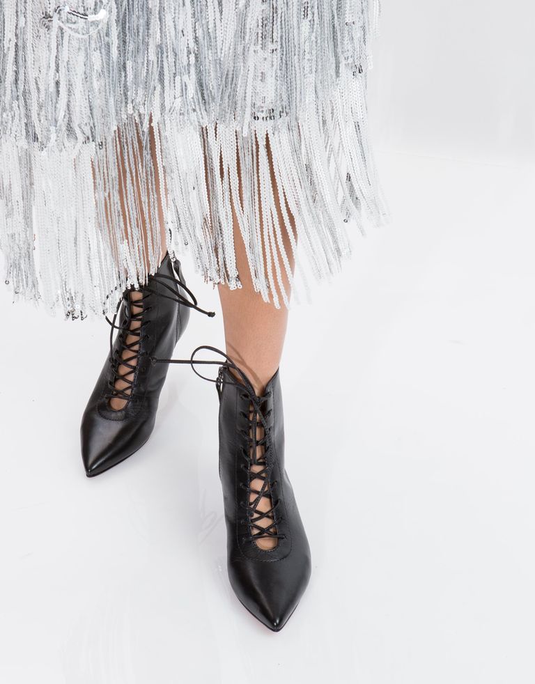 מגפוני סטילטו מחודדים ללא לשון, משתלבים יופי עם גרביים או פשוט על כפות הרגליים.