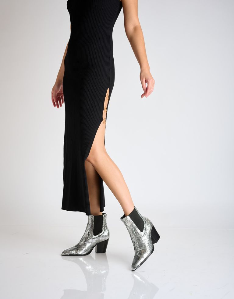 מגפי בוקרים עשויים עור, בטקסטורות מפתיעות. המגפיים בתוספת גומי בצדדים ודיטייל מתכת בחרטום.- הכי בטרנד.