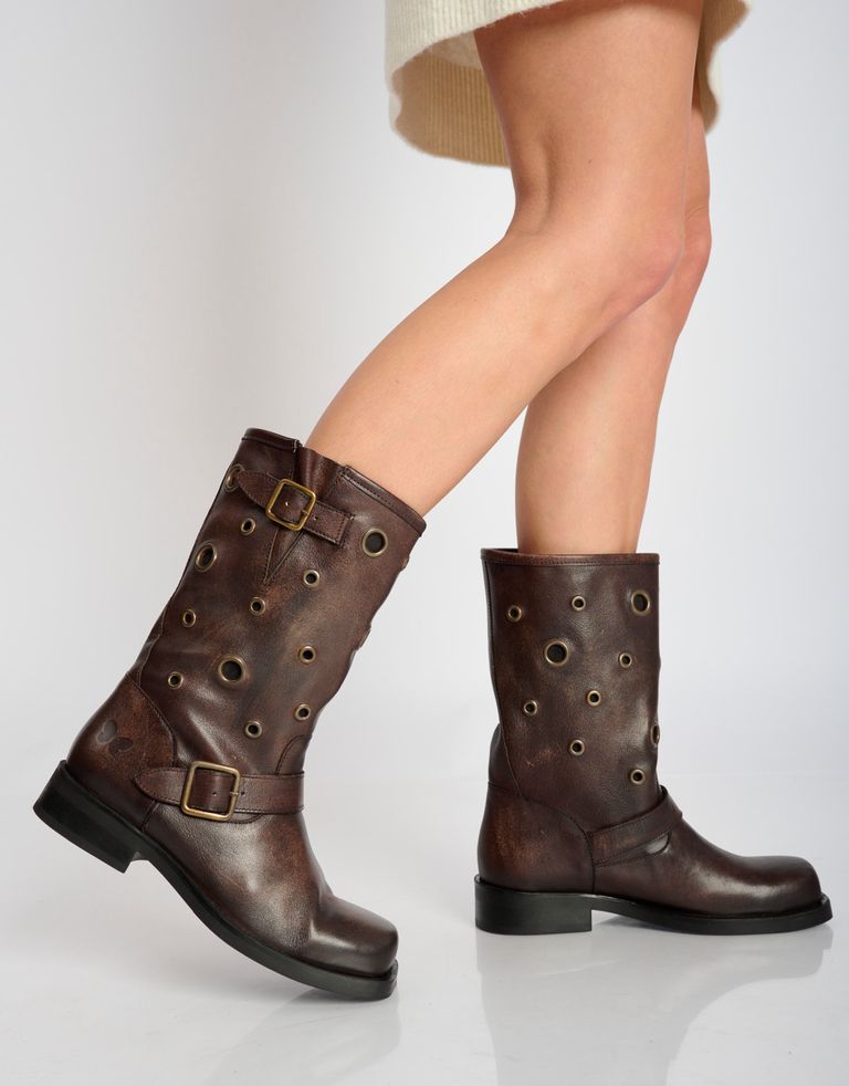 מגפוני נשים עם סוליות טרקטור צבעוניות ומסיביות, כמתבקש בפורמט. מגפונים ונהנים, גרסת שוץ.