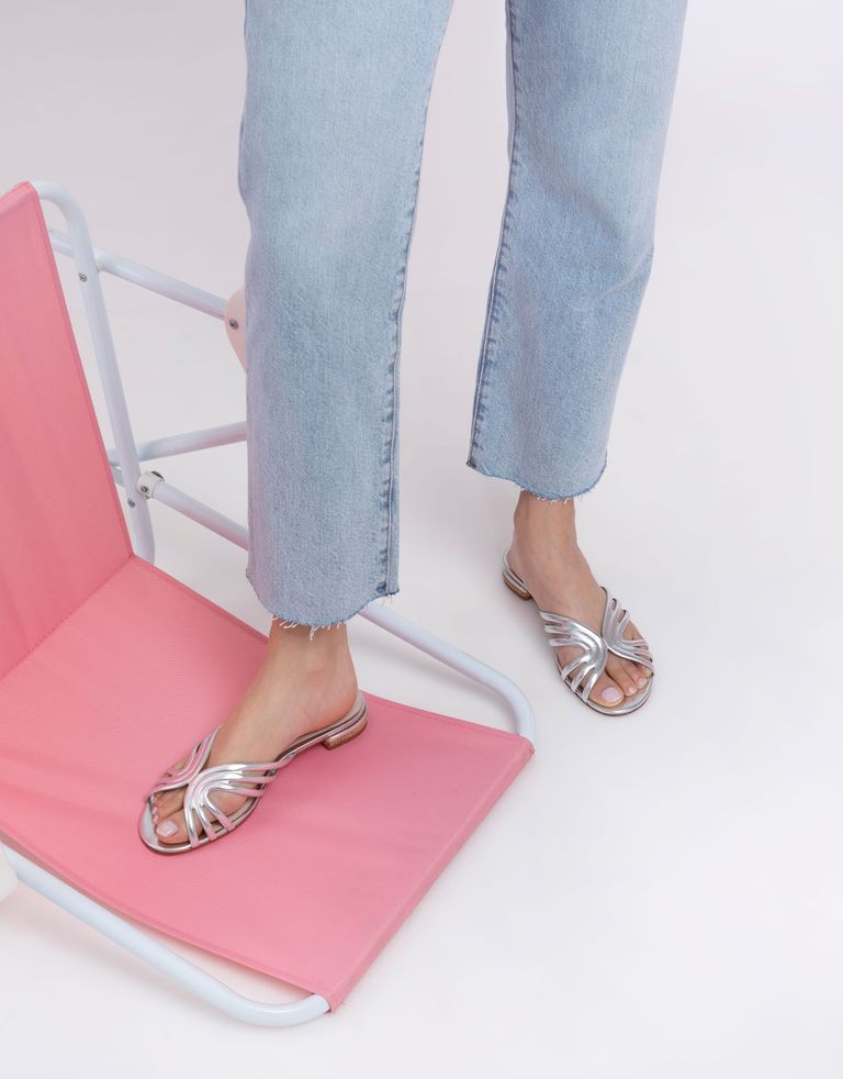 כפכפים מטאליים PIPER – שוץ תמיד מצטיינים במיולז מהסוג הזה – שטוחים, בוהקים ותופסים את המבט בשנייה. הרצועות העדינות יוצרות דוגמת פרפר והוייב הכללי חופשי ומאושר. גם אנחנו.