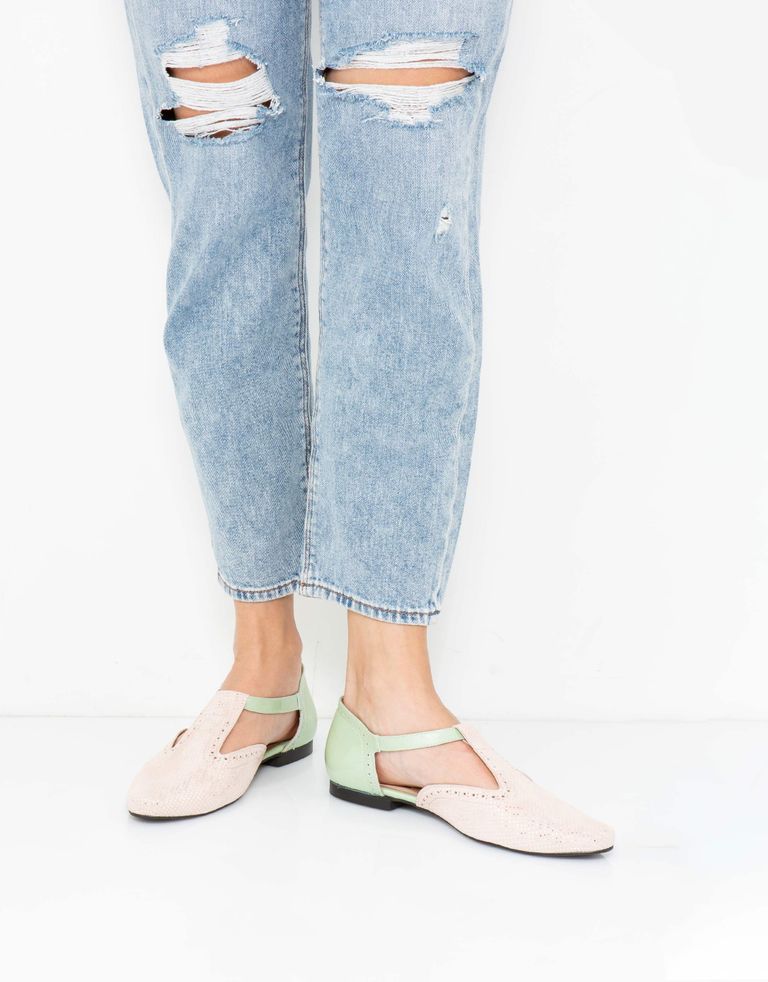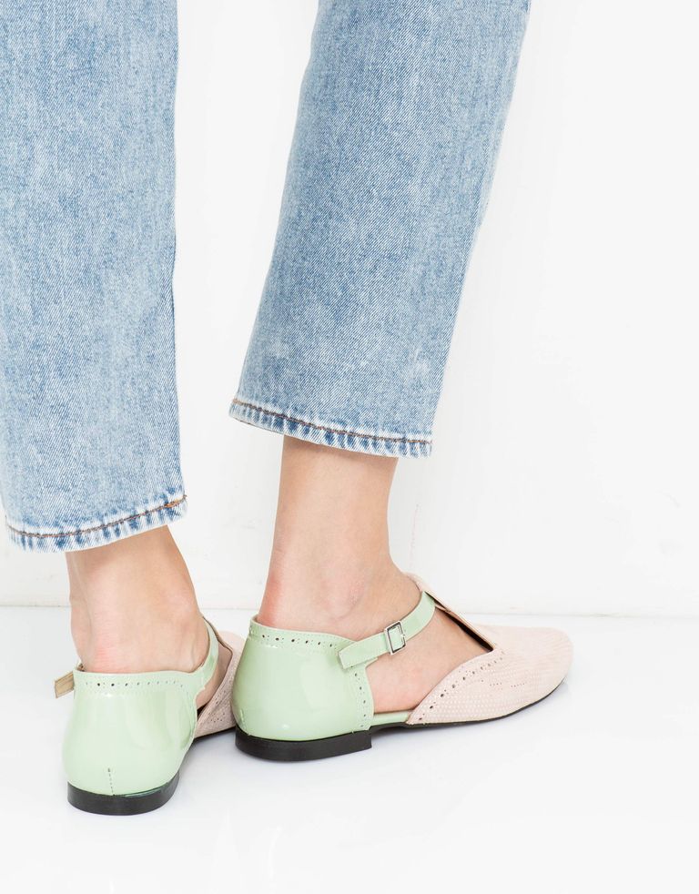 נעליים סגורות עם אבזם. שימו לב לשילובי הצבעים – לא מושלם?