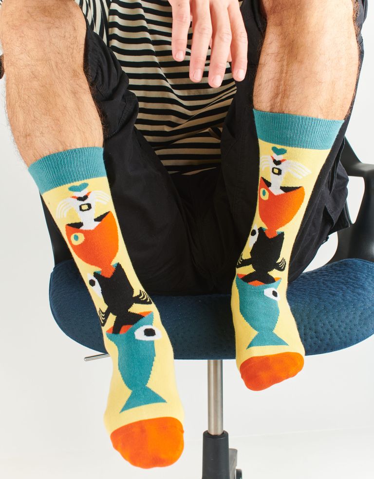 גרביים אקולוגיים של שופרא בשיתוף Healthy Seas Socks ובעיצוב מאיירים ומעצבים ישראליים.
