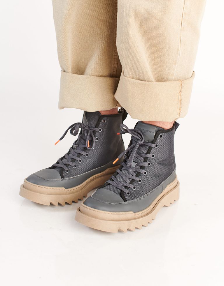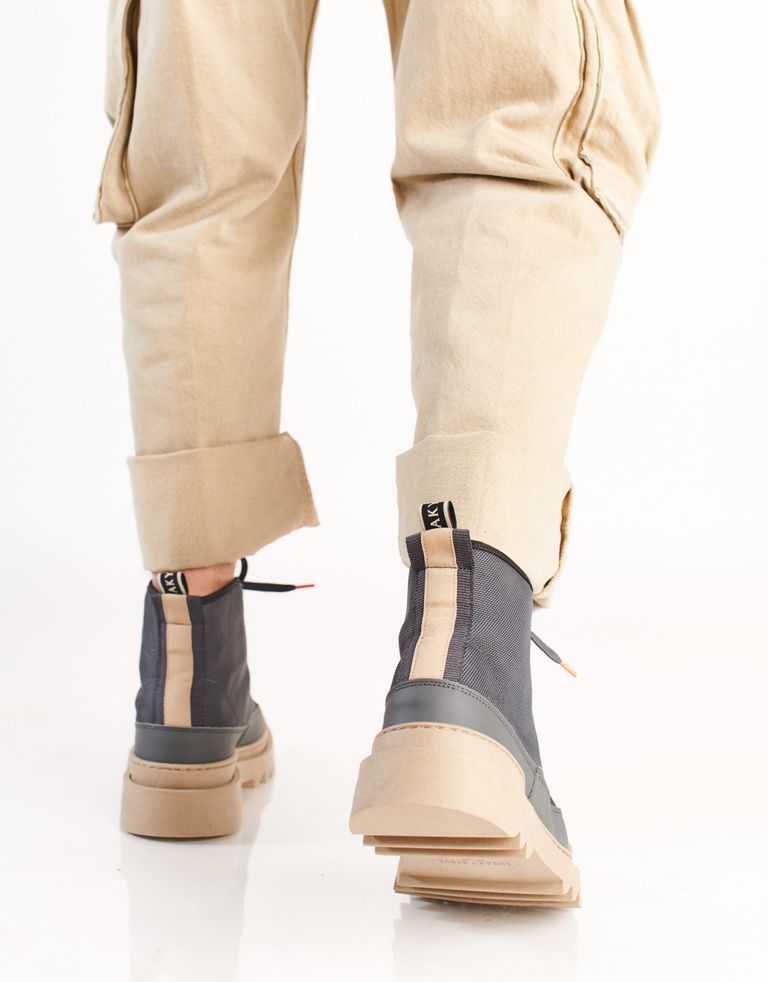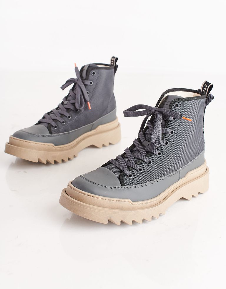 נעליים גבוהות עם סוליית טרקטור מסיבית, הכלאה מדויקת בין סניקרס היי-טופ לנעלי הרים. לנעליים רפידה נשלפת והן עשויות ניילון, עור וכותנה אורגנית.