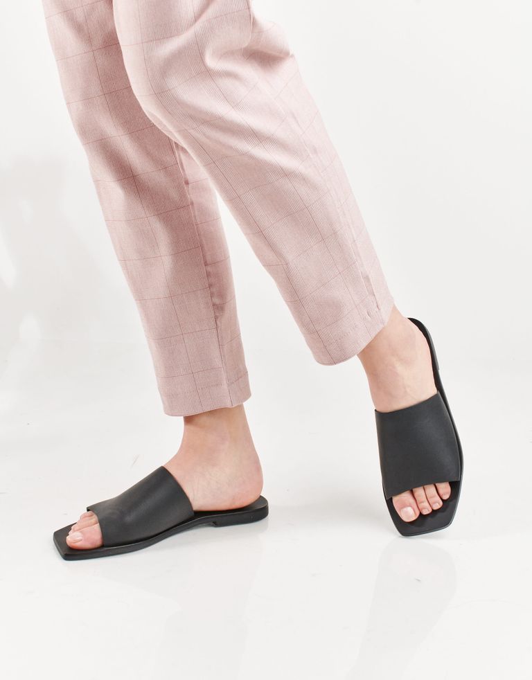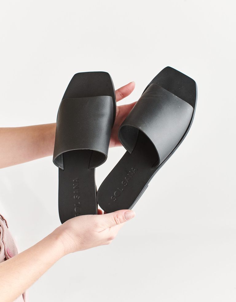כפכפי עור לנשים עם חרטום מרובע חושף בהונות. קלאסי סול סאנה.