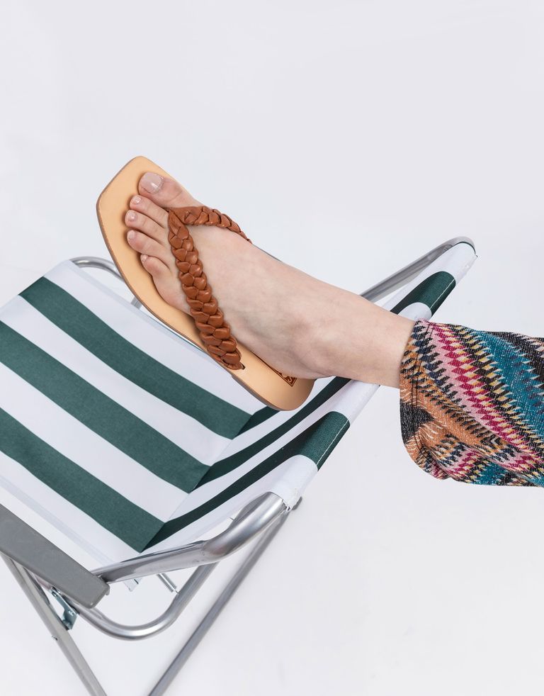 כפכפי אצבע לנשים LOTUS, הכפכפים שטוחים ועשויים ממעור קלוע, כי ת'כלס הכי יפה ככה. כפכפי הנשים של Sol Sana בעיצוב נקי, מינימליסטי ונכון.