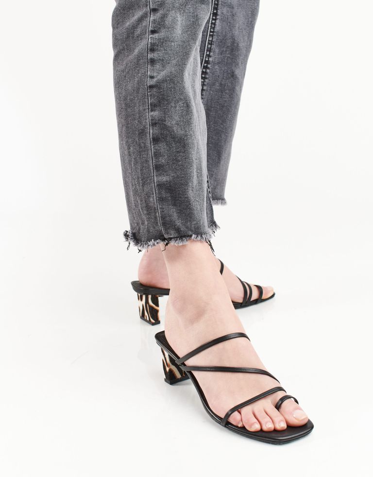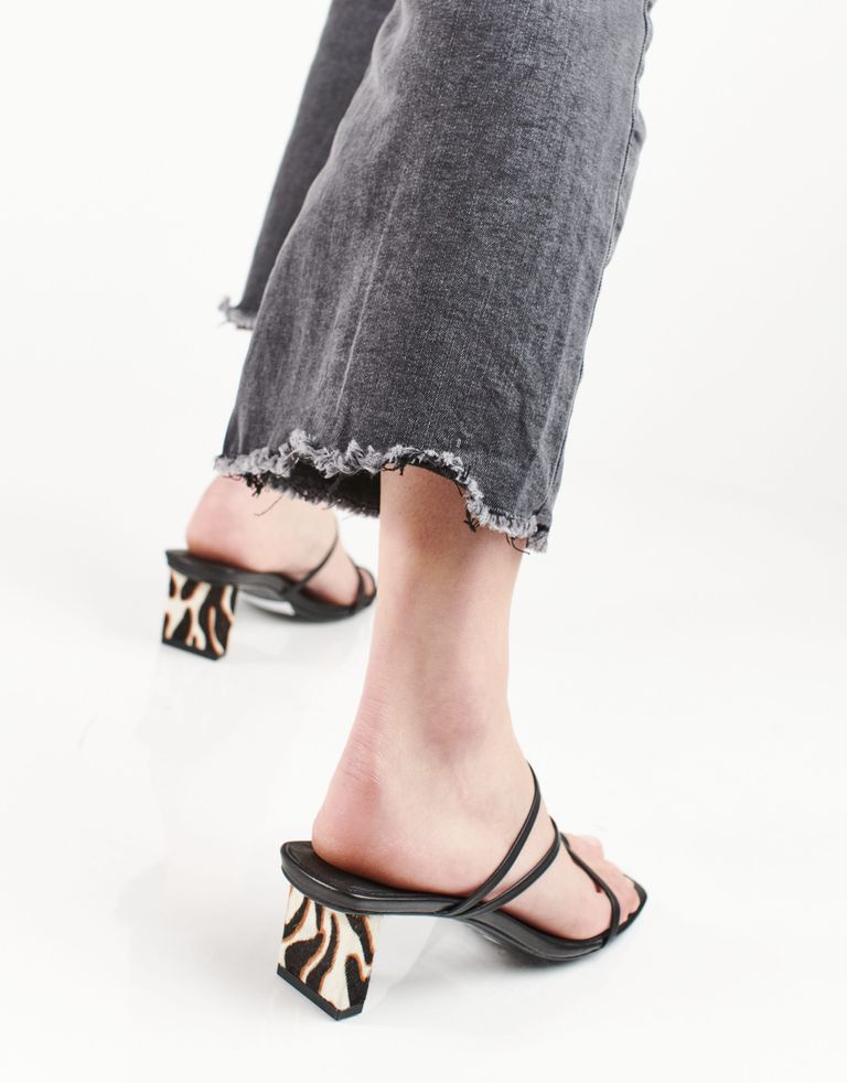 כפכפים עדינים עשויים עור בעבודת יד, עם רצועות דקות שעוטפות את גב כף הרגל והבוהן. שימו לב לעקב החמדמד שמשדרג פלאים את כל הלוק.