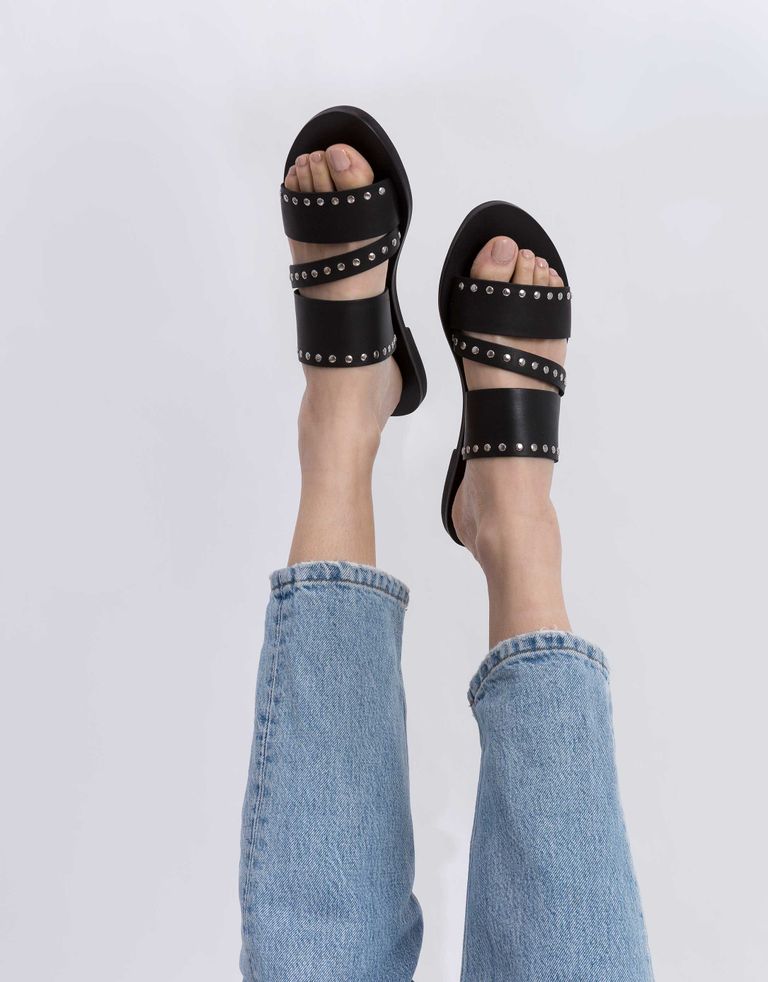 אזל המלאי ):כפכפים שטוחים עם שלוש רצועות מעוטרות ניטים.