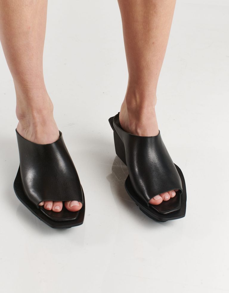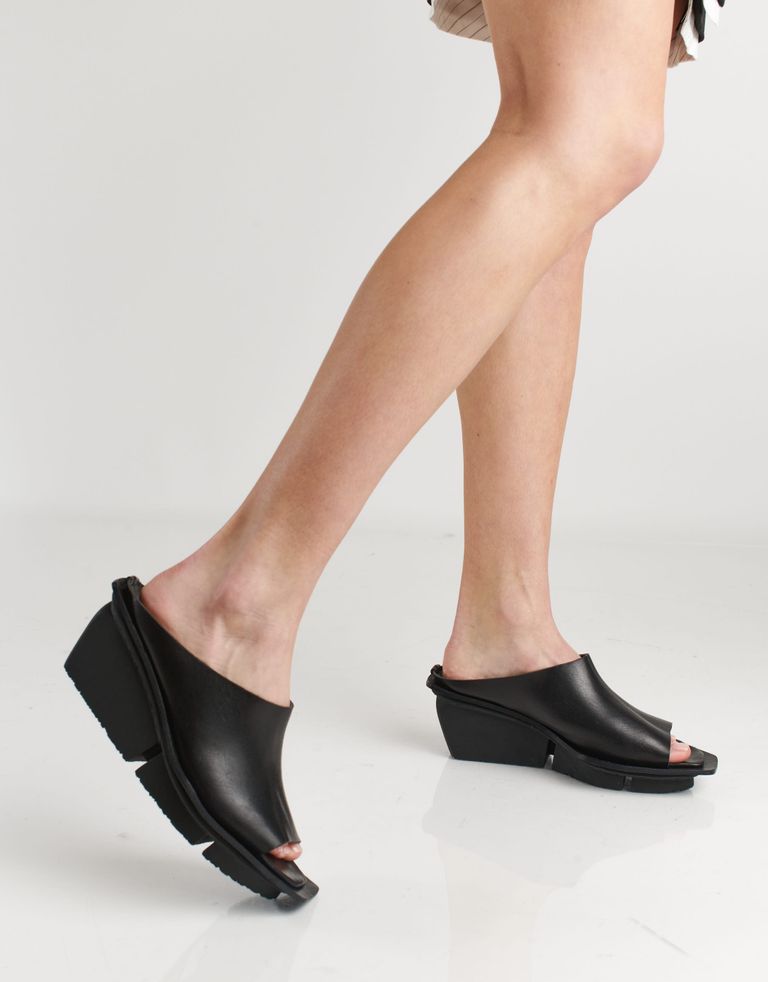כפכפי פלטפורמה במראה גיאומטרי עם מפתח פיפ-טואו קדמי שמאריך את הרגל. הכפכפים עשויים עור צבוע בשיטה טבעית, ללא כימיקלים, והדבק הוא על בסיס מים, כך שיש פה חשיבה על כל פרט בתהליך הייצור במטרה להפחית את הפגיעה בסביבה.