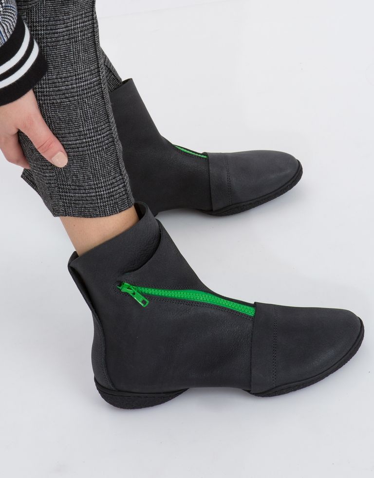 מגפוני נשים עם רוכסן צבעוני שעושה לנו כיף. צבועים בשיטה טבעית, ללא כימיקלים, ועשויים מחומרים המפחיתים ככל האפשר את הפגיעה בסביבה. הסולייה לא רק נוחה בצורה לא-רגילה, היא גם ניתנת למיחזור. כדאי שתדעי – שיטת הצביעה יכולה לגרום לשינויים קלים בצבע או סימנים בעור, אבל זה חלק מהיופי, כל זוג טריפן מגיע עם ייחודיות ועניין משלו.