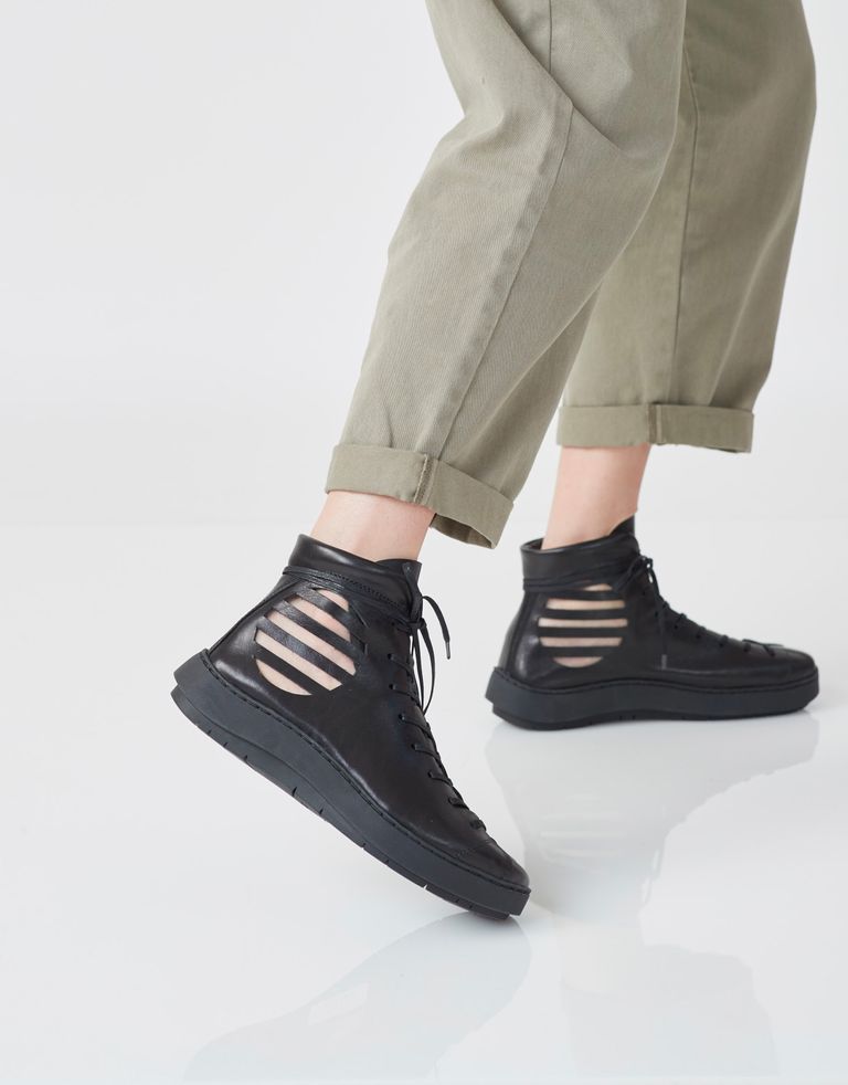 המעצבים הגרמנים אנג'לה ספית' ומייקל אוהלר יסדו את טריפן (לרוץ, בגרמנית) כמיזם אמנותי שהתגלגל לתצוגות של כמה ממעצבי האופנה הבולטים בעולם, ביניהם יז'י יממוטו ופרי אליס. המותג נמכר בנקודות מכירה בודדות ברחבי העולם ומיוצר בהקפדה על אחריות חברתית וסביבתית, לצד עיצוב יחודי שהופך כל נעל ליצירת אמנות אמיתית. הנעליים מיוצרות מחומרים טבעיים בבתי מלאכה קטנים, כאלו המקפידים על שיטות ייצור מסורתיות וסופר-איכותיות, מה שמבטיח אורך חיים ארוך במיוחד. אגב, למרות המראה המפתיע הן נוחות מאוד.