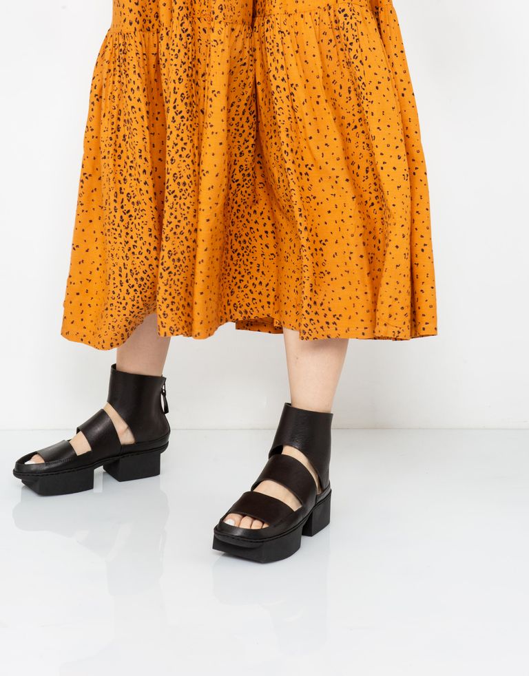 המעצבים הגרמנים אנג'לה ספית' ומייקל אוהלר יסדו את טריפן (לרוץ, בגרמנית) כמיזם אמנותי שהתגלגל לתצוגות של כמה ממעצבי האופנה הבולטים בעולם, ביניהם יז'י יממוטו ופרי אליס. המותג נמכר בנקודות מכירה בודדות ברחבי העולם ומיוצר בהקפדה על אחריות חברתית וסביבתית, לצד עיצוב יחודי שהופך כל נעל ליצירת אמנות אמיתית. הנעליים מיוצרות מחומרים טבעיים בבתי מלאכה קטנים, כאלו המקפידים על שיטות ייצור מסורתיות וסופר-איכותיות, מה שמבטיח אורך חיים ארוך במיוחד. אגב, למרות המראה המפתיע הן נוחות מאוד.