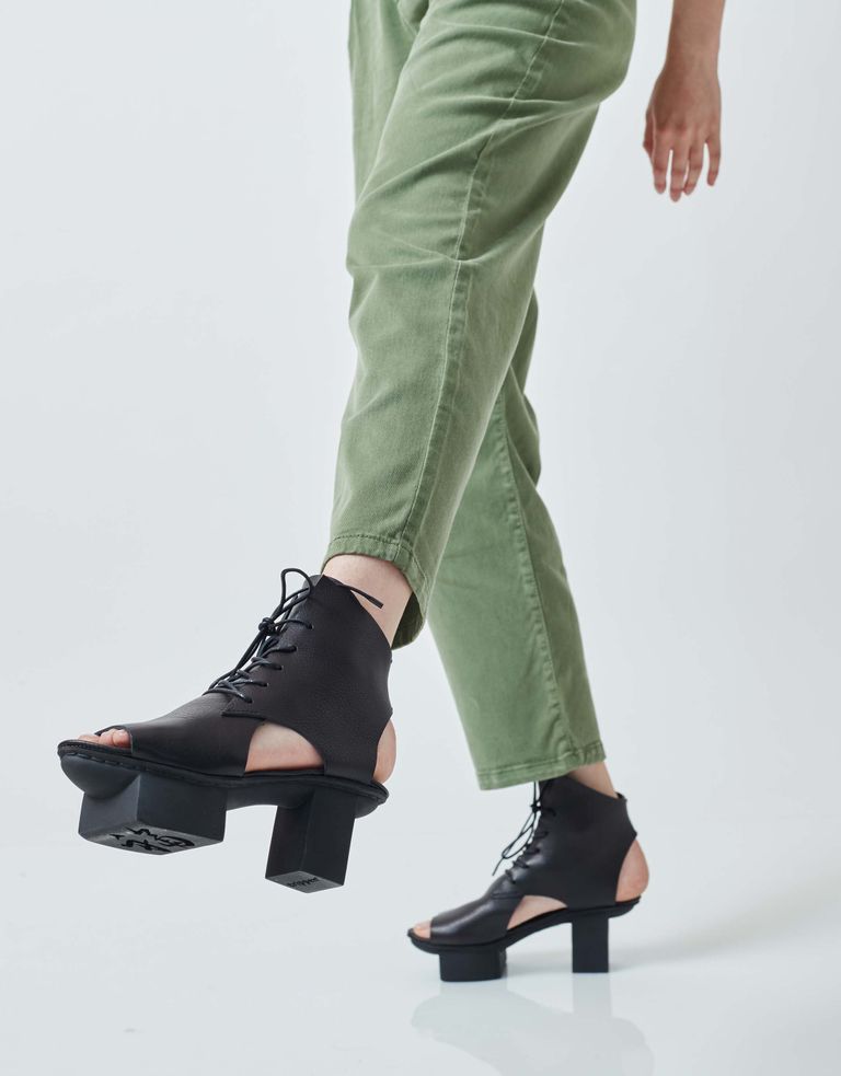 המעצבים הגרמנים אנג'לה ספית' ומייקל אוהלר יסדו את טריפן (לרוץ, בגרמנית) כמיזם אמנותי שהתגלגל לתצוגות של כמה ממעצבי האופנה הבולטים בעולם, ביניהם יז'י יממוטו ופרי אליס. המותג נמכר בנקודות מכירה בודדות ברחבי העולם ומיוצר בהקפדה על אחריות חברתית וסביבתית, לצד עיצוב יחודי שהופך כל נעל ליצירת אמנות אמיתית. הנעליים מיוצרות מחומרים טבעיים בבתי מלאכה קטנים, כאלו המקפידים על שיטות ייצור מסורתיות וסופר-איכותיות, מה שמבטיח אורך חיים ארוך במיוחד. אגב, למרות המראה המפתיע הן נוחות מאוד.