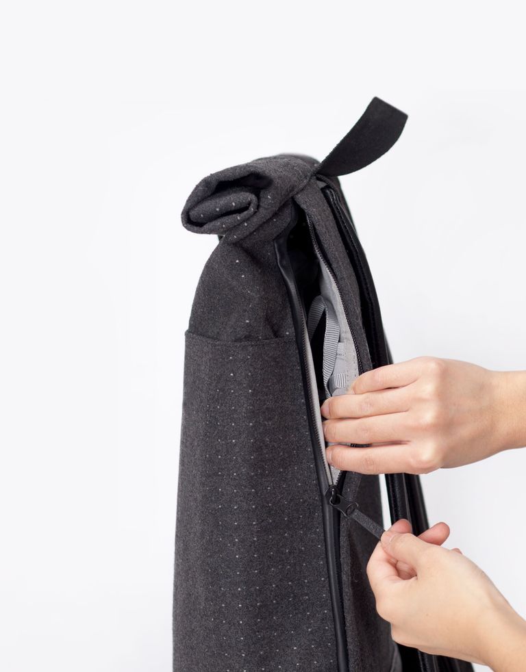 תיק גב בעיצוב מדויק, בעל תא מרכזי (עם כיס ללפטופ עד '15.4, שני כיסי רשת וכיס לבקבוק שתייה) ושלושה כיסים חיצוניים. התיק עשוי מבד עם בטנה מחומר עמיד למים, והוא מאובזר ברוכסן צדדי המאפשר גישה נוחה לתא הפנימי.