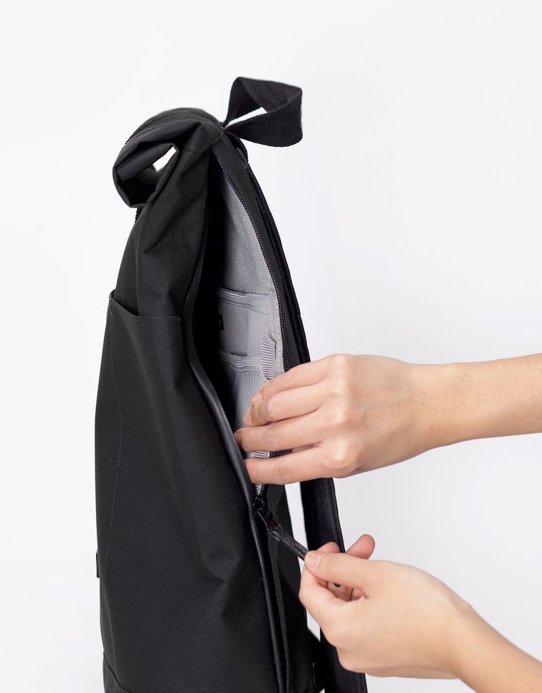 תיק גב בעיצוב מדויק, בעל תא מרכזי (עם כיס ללפטופ עד '15.4, שני כיסי רשת וכיס לבקבוק שתייה) ושלושה כיסים חיצוניים. התיק עשוי מפוליאסטר עמיד למים והוא מאובזר ברוכסן צדדי, המאפשר גישה נוחה לתא הפנימי.