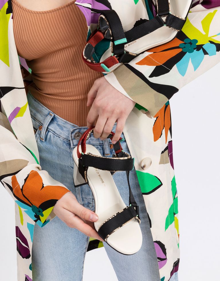 הכי בפשטות והכי בקלילות, אבל עם גובה: סנדלי AURA עם רצועות עור וניילון בסגירת סקוטץ', כולל עקב בגובה בינוני. כמעט סנדלי טיולים ואז הכי לא.