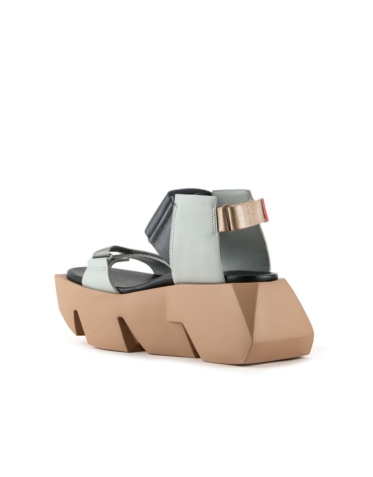 סנדלים עם סוליית פלטפורמה גבוהה במראה צ'אנקי וגפה עם שלוש רצועות עור מתכווננות בשילוב רצועות ניילון מבריקות, כך שיתאימו בול לכף הרגל שלך.