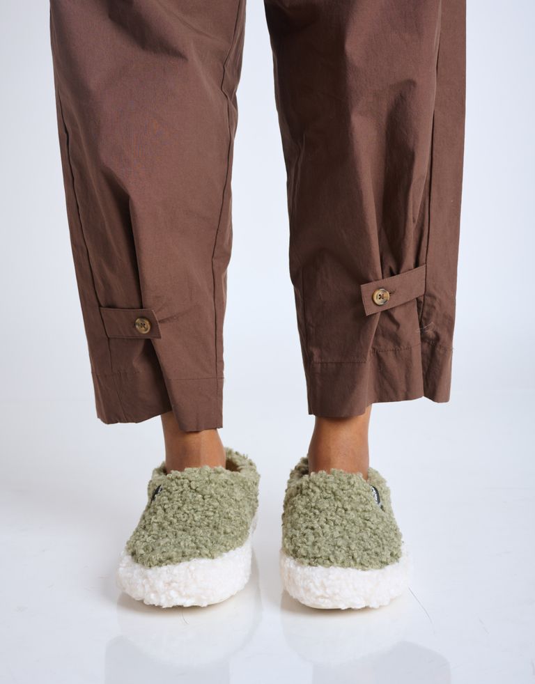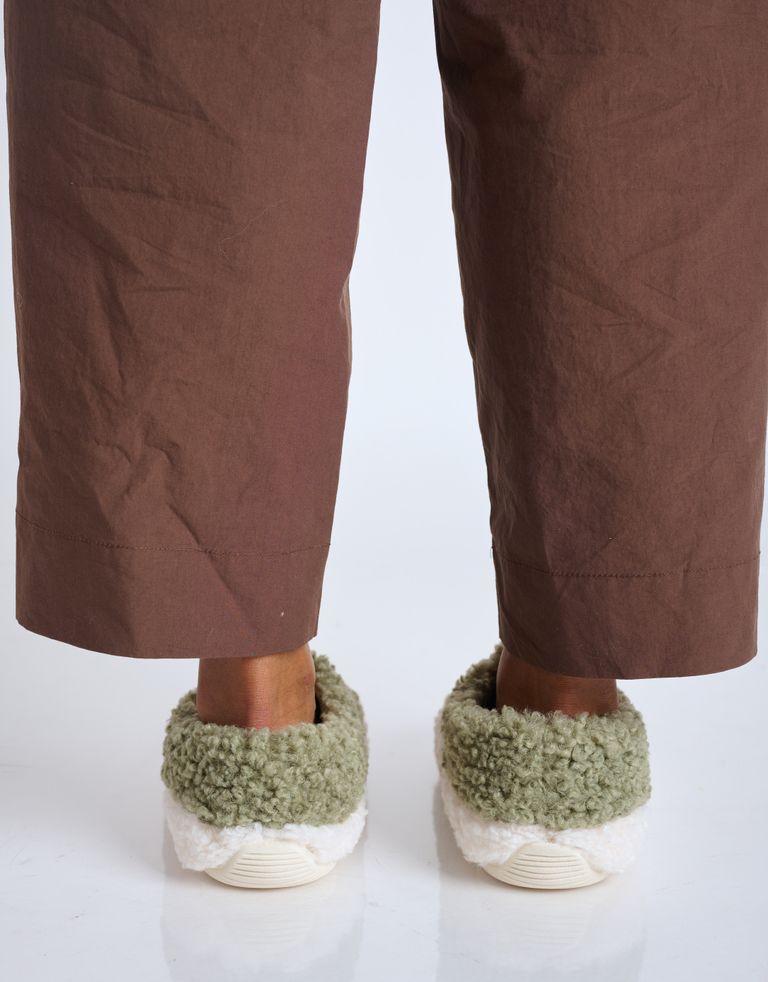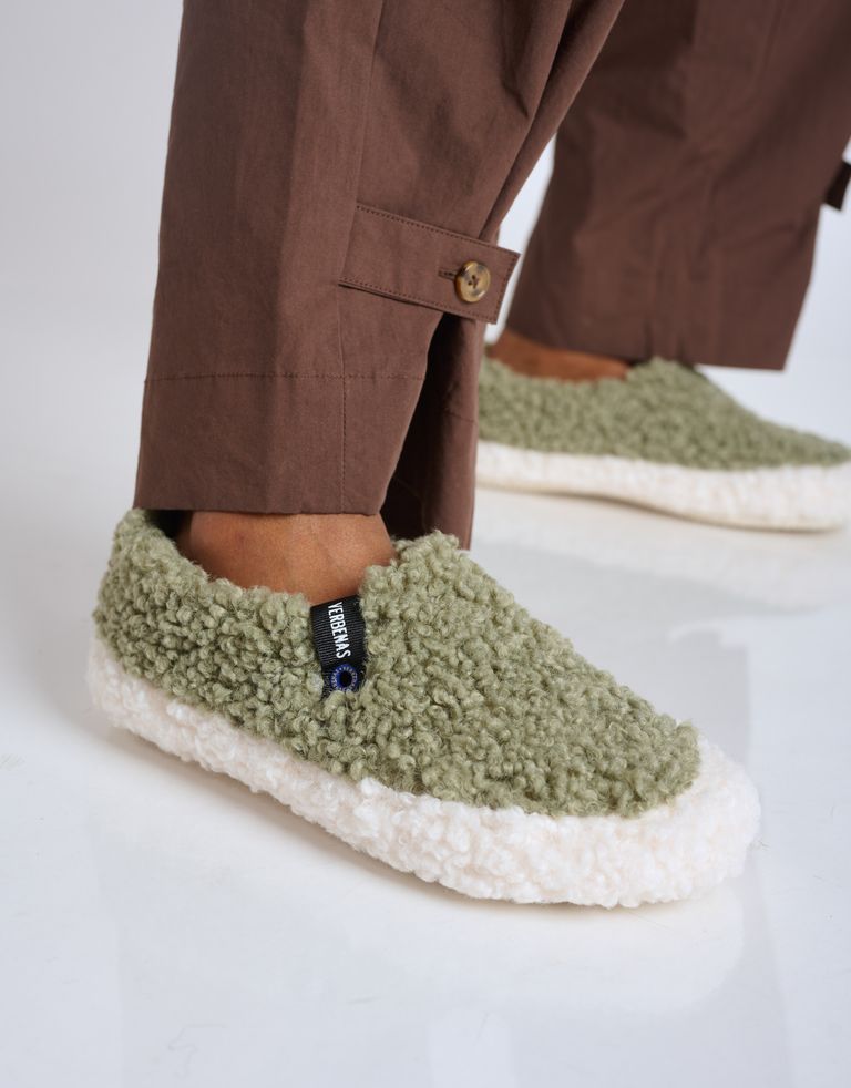 נעלי בית סליפ-און, עשויות מבד רך וממוחזר דמוי צמר. הנעליים חמימות ונעימות בצורה יוצאת דופן ובעלות סוליית גומי קשיחה המאפשרת לצאת איתן החוצה.