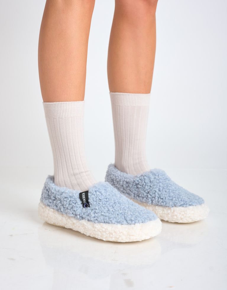 נעלי בית סליפ-און, עשויות מבד רך וממוחזר דמוי צמר. הנעליים חמימות ונעימות בצורה יוצאת דופן ובעלות סוליית גומי קשיחה המאפשרת לצאת איתן החוצה.