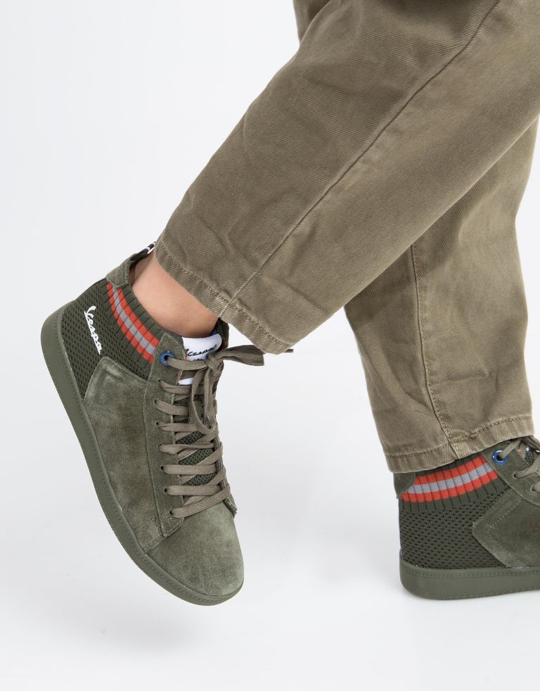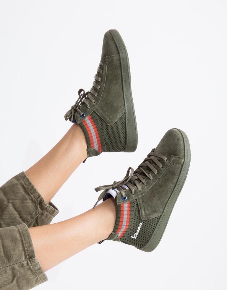 נעליים ששואבות השראה מקטנוע, מוזר? לא אצל Vespa, מותג הסניקרס של חברת קטנועי הרטרו האייקונים. הסניקרס של וספה ממשיכות בקו של המותג, עם סגנון יצירתי, תוסס וקוסמופוליטי, ואף מעוצבות כך שהחלק האחורי שלהן מקביל לכנפיים האחוריות של הקטנוע, כולל הלוגו המוכר.