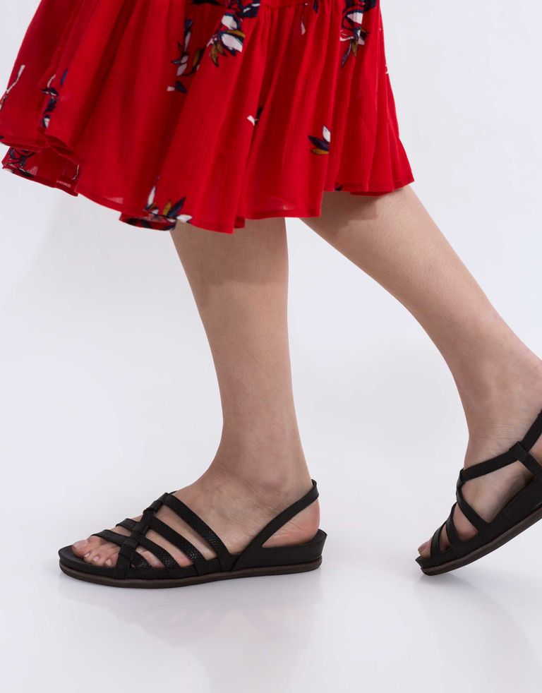 סנדלים שטוחים בעלי רפידה נוחה. חיבור רצועות א-סימטרי שיוצר כלוב של זהב.