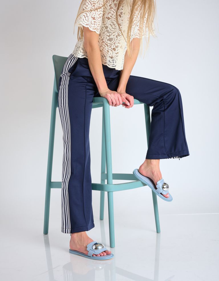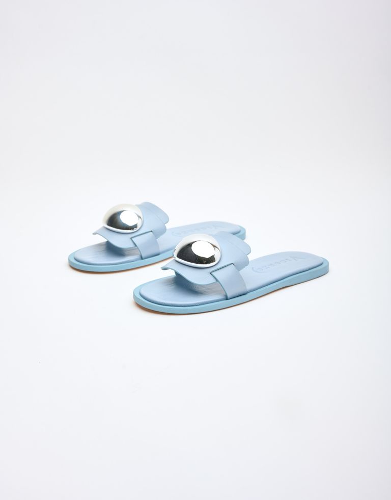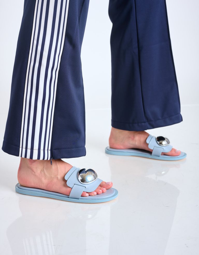 כפכפי עור שטוחים עם קישוט מנצנץ ונוכחות אלגנטית.