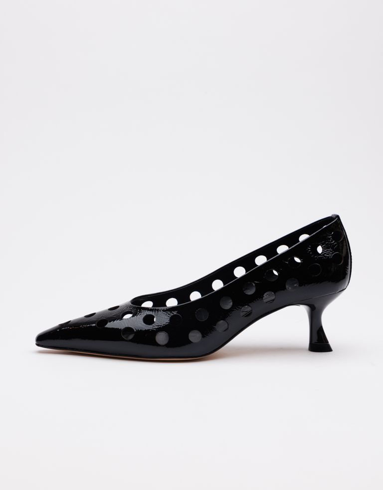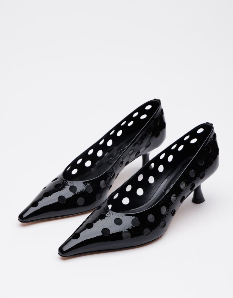 נעליים שפיציות מעור עם חיתוכי לייזר בעיצוב קלאסי ומדויק. שילוב מושלם בין אלגנטיות על-זמנית לנשיות מתוחכמת.