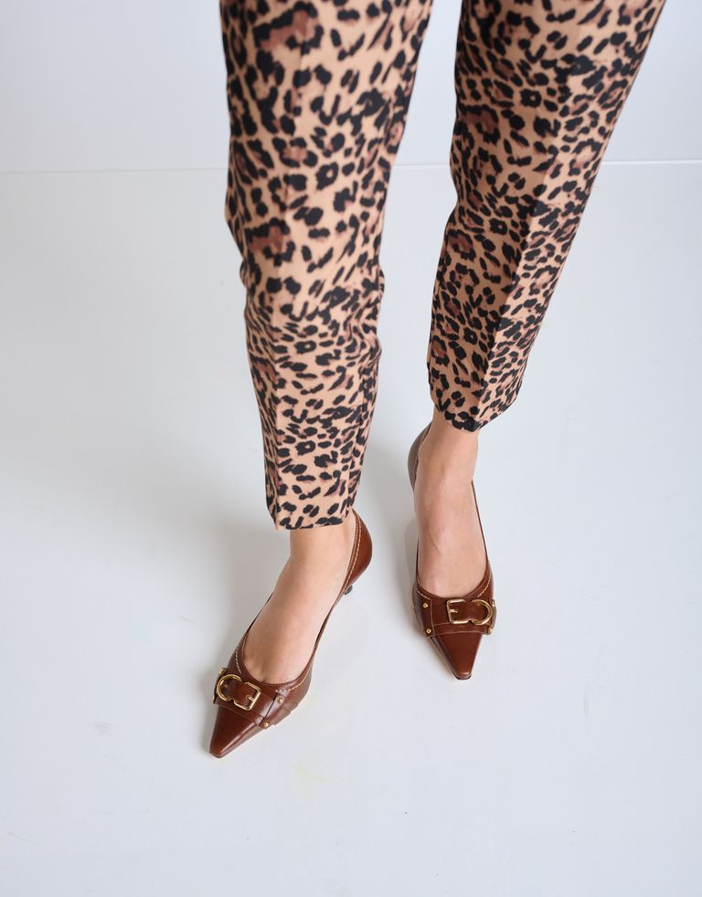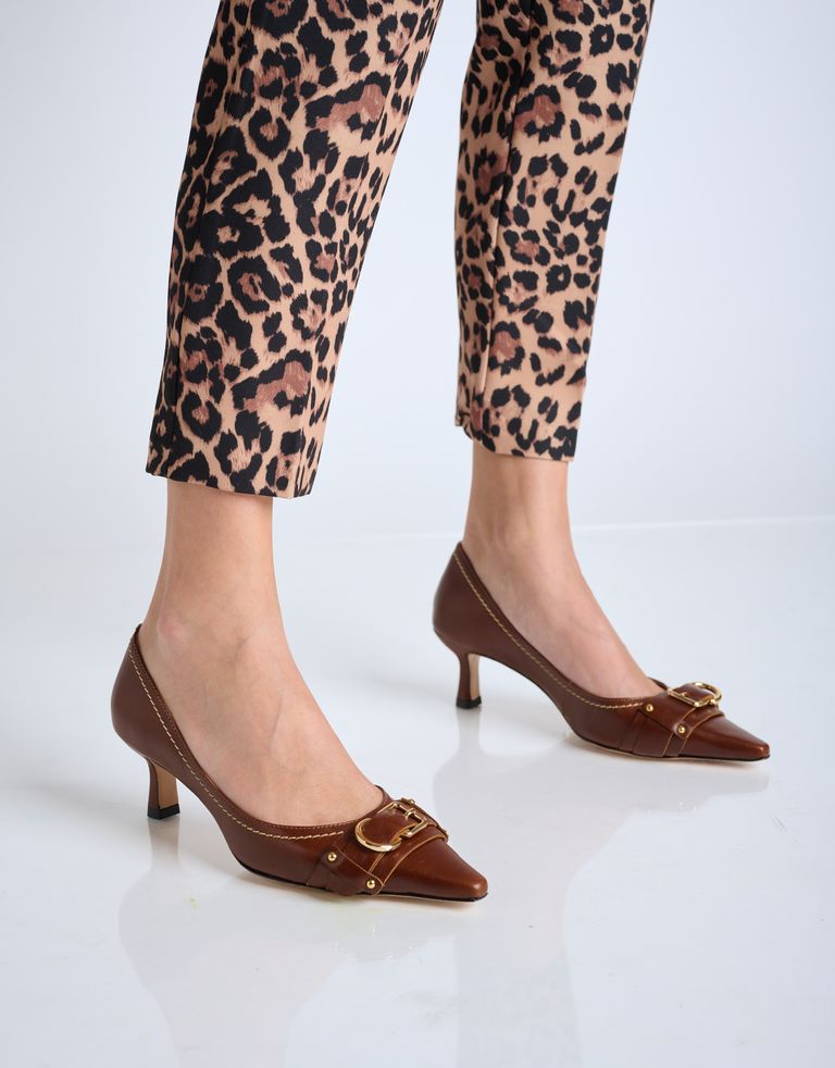 נעליים עם עקב עדין בתוספת אבזם בפרונט ומראה וינטג'. נעלי שפיץ בעלות סוליית עור איכותית ומיוצרות בעבודת יד.