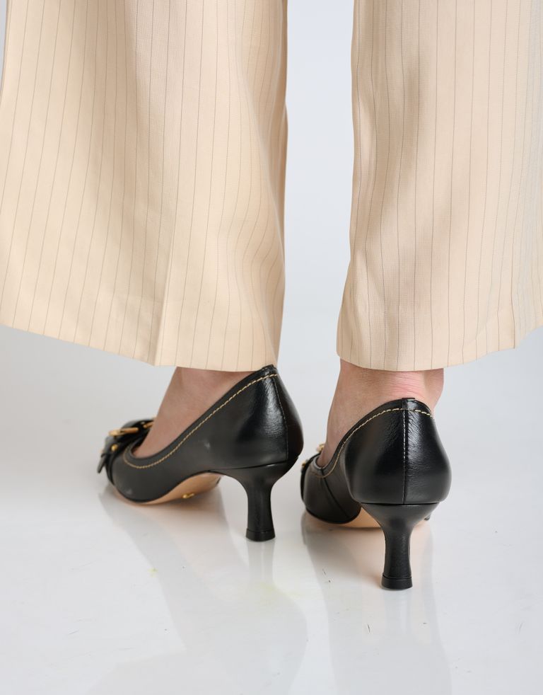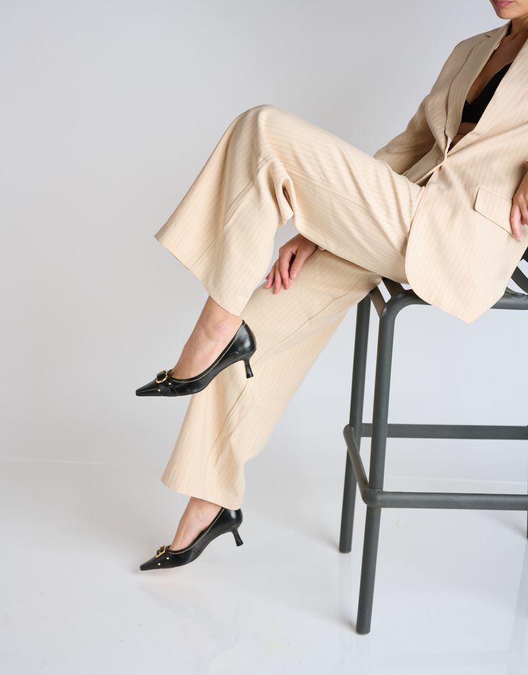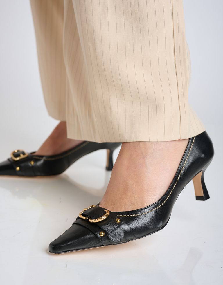 נעליים עם עקב עדין בתוספת אבזם בפרונט ומראה וינטג'. נעלי שפיץ בעלות סוליית עור איכותית ומיוצרות בעבודת יד.