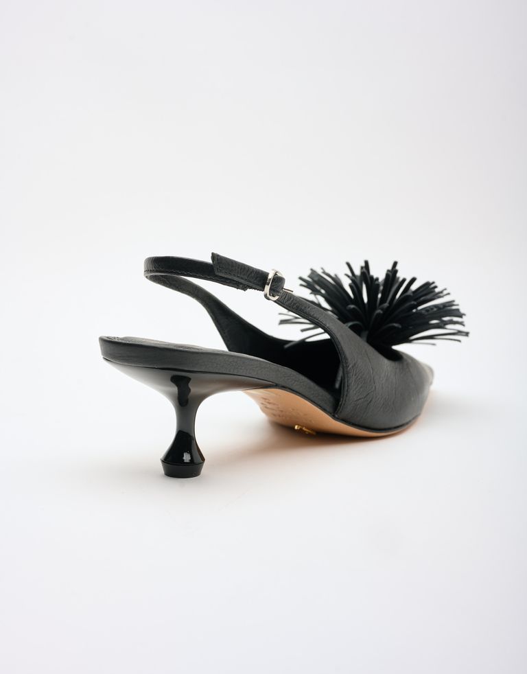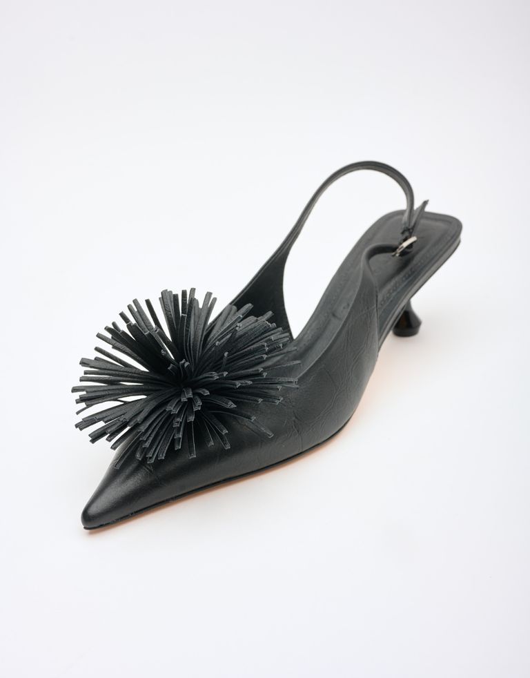 נעלי סירה עם עקב קיטן (kitten heel) ופונפון שמוסיף שיק נשי ומלא חיים.