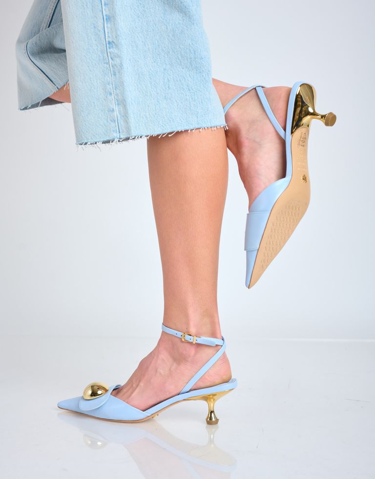 נעלי שפיץ עם עקב קיטן (kitten heel) וקישוט בחזית בהשראת חפתים. לנעליים סוליית עור איכותית והן מיוצרות בעבודת יד.