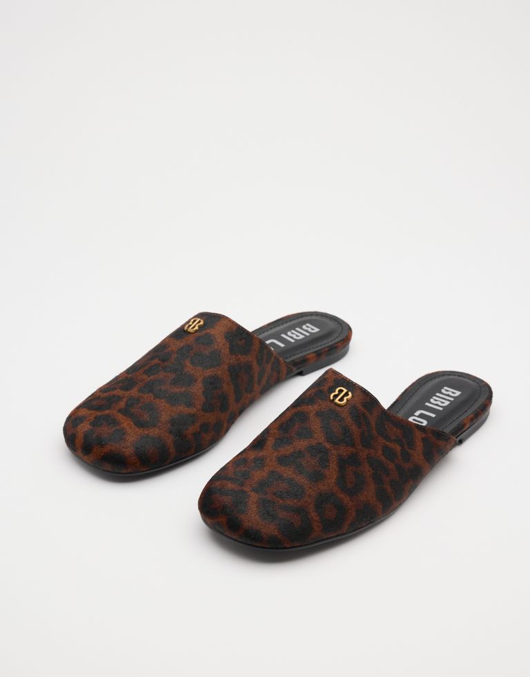 כפכפים שטוחים עם פרינט מנוחש ודיטייל מתכת.