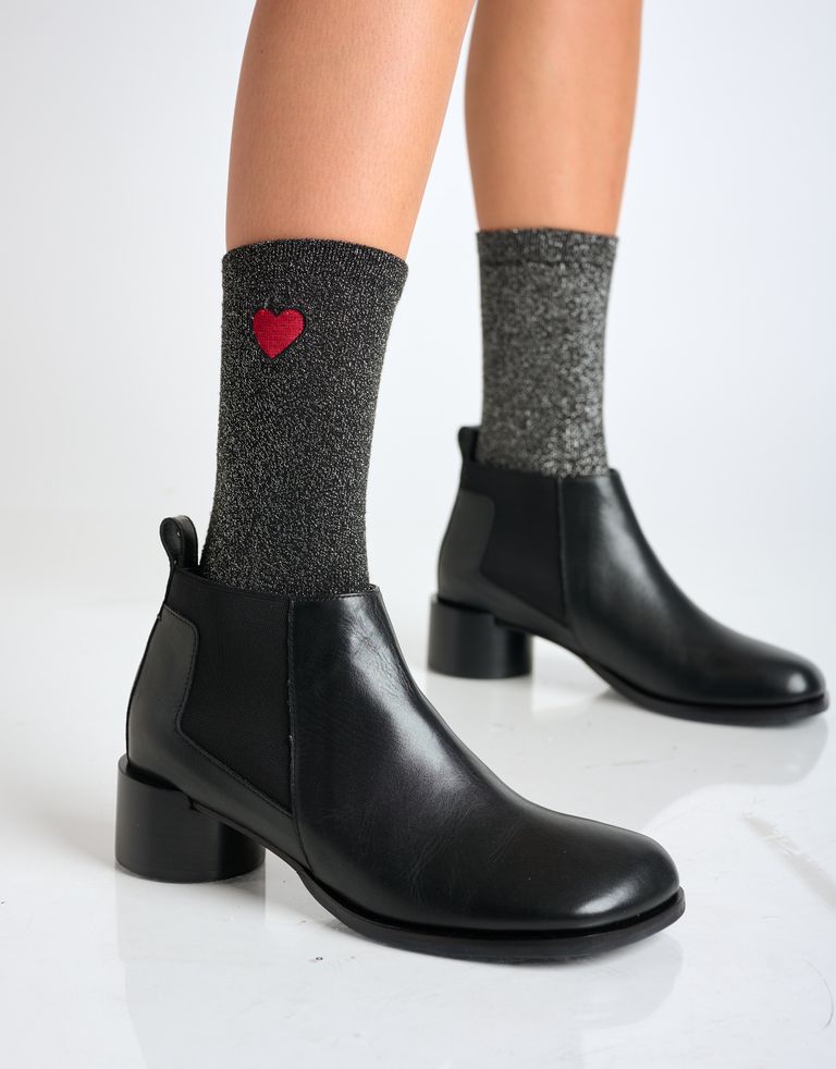 מגפוני עור בעיצוב מינימליסטי עם עקב רחב ומעוגל.